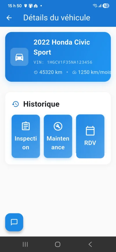 Application mobile client permettant de prendre rendez-vous, discuter avec les conseillers techniques et consulter inspections, recommandations et historique d’entretien, en tout temps, en toute simplicité.